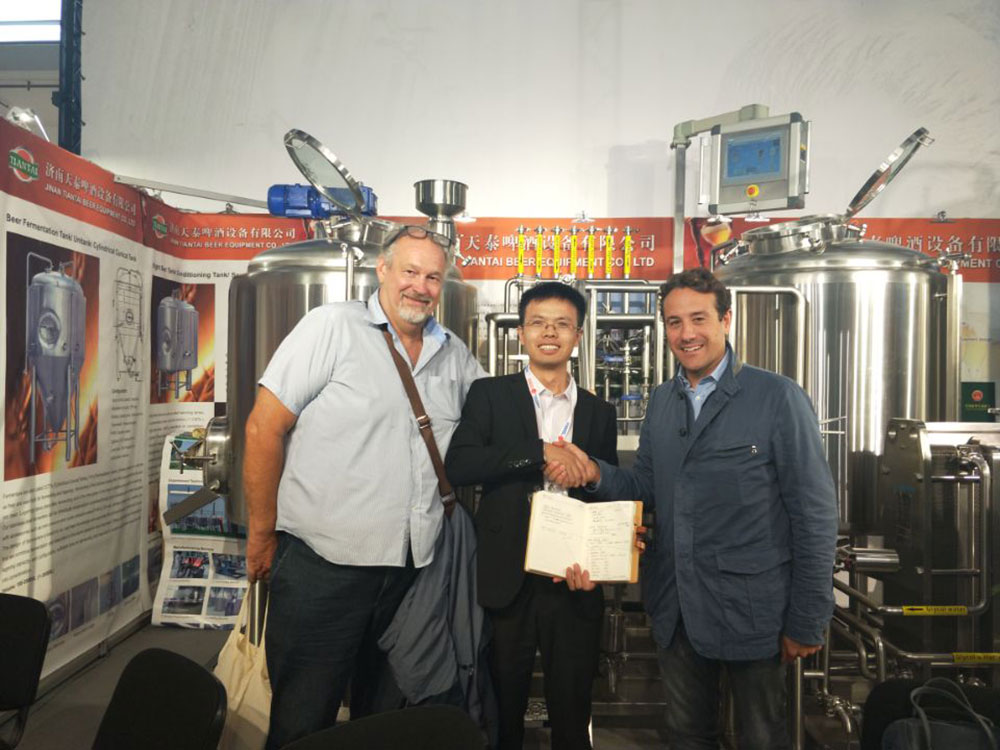 百聞不如一見,客戶慕名而來,在天泰的展位前合影留念!這就是天泰在國際精釀啤酒設備市場的知名度!